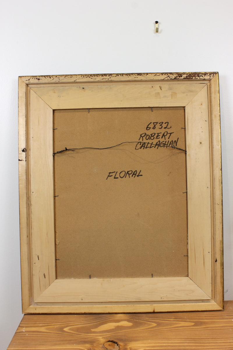 Callaghan's impressionist approach to this still life evokes the sensations and textures of its subjects, the vase, flowers, table, and wall are treated each in their own way, yet maintaining compositional balance.